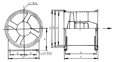 2、示例:SDF-8Ⅰ表示葉輪直徑為800mm的隧道式軸流風機,Ⅰ表示不同的葉片角度。