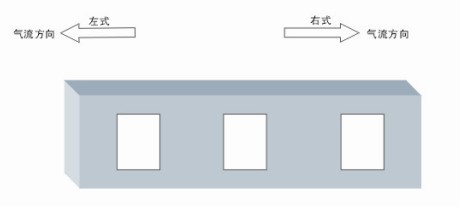 面對(duì)機(jī)組操作面,機(jī)組內(nèi)氣流從左往右流動(dòng)的稱之為右式機(jī)組,從右向左流動(dòng)稱之為左式機(jī)組。對(duì)于立式機(jī)組,以穿過表冷器的氣流方向作為判定依據(jù)。